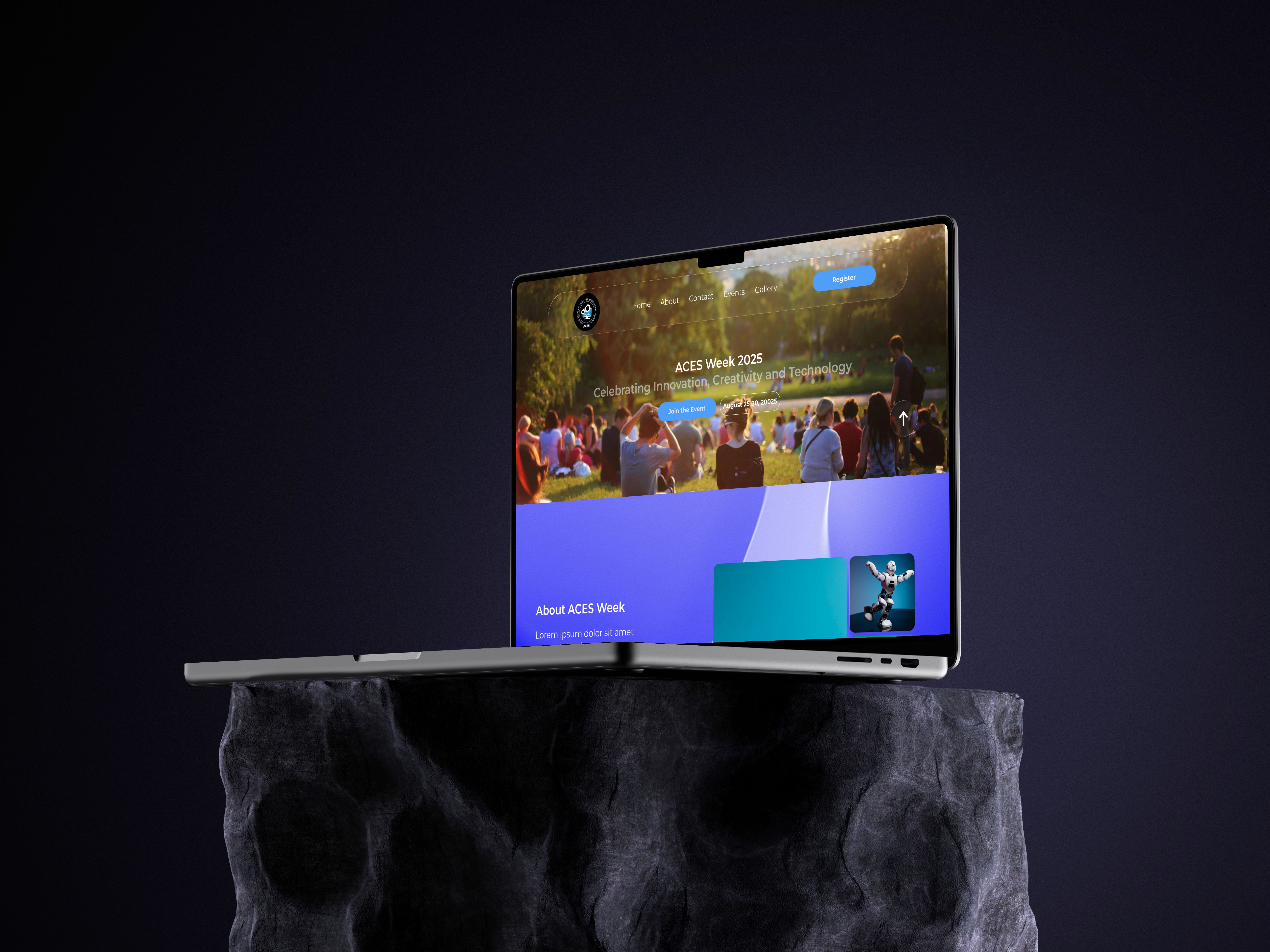 Designed a modern and engaging interface that aligned with ACES branding, using clear typography, bold visuals, and a vibrant theme suitable for the event.